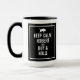 Mug moderne avec une citation de commerçant blanc et nom sur un arrière - plan noir. Personnalisez avec le nom.