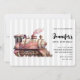 Invitation d'anniversaire avec une illustration cool. Une locomotive rose mignonne et fantaisiste. Des bouffées de fumée rose sortant de sa cheminée.