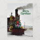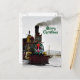 Cette carte postale de Noël est un bon choix pour les hommes qui veulent envoyer des voeux de vacances aux clients, à la famille et à vos amis. Conçu à partir d'une photographie d'un train vintage avec couronne de Noël illustrée et arc rouge. * Des graphiques et des photographies du domaine public ont été utilisés pour créer ce design en couches