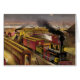 Scène et slogan de train de nuit avec une image d'archives d'une cour de train la nuit. Le T-shirts, les affiches, les tasses, et d'autres articles pour le train éventent, cuir épais d'histoire, et fan americana.