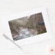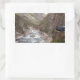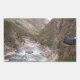 Photo autocollant du train bleu du chemin de fer Inca qui va de Cusco vers Machu Picchu en passant par la Vallée Sacrée ou la Vallée d'Urubamba avec de grandes montagnes et la rivière Urubamba au Pérou.