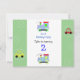 Un design amusant pour un anniversaire de jeune. Voitures de course et petits trains de jouets dans des couleurs amusantes. Bordures de vert avec des motifs en cercle.