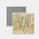 Le mot "Heal" est de couleur vert citron pâle et jaune. Derrière le mot se cache un coeur rose et jaune pastel doux. OEuvre d'art inspirante de Laurel Latto pour DonnaBellas Angels. Vous pouvez personnaliser ces ornements d'art motivationnel avec vos textes et images en utilisant l'option "Customiser". Customisez le mot inspirant art fridge magnet avec vos propres textes et images pour faire des cadeaux motivationnels personnalisés ou des faveurs de fête d'encouragement pour les mariages, les vacances, ou un autre événement spécial! Les produits de la vente de cet art bénéficient à l'association DonnaBellas Angels dont la mission est de fournir un art inspirant au public pour le bien-être en santé mentale. La devise de l'organisation est "La médecine guérit le corps, l'art guérit l'âme". Pour en savoir plus, consultez le site donnabellasangels.org.