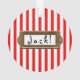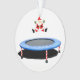 Ornement de trampoline créatif cadeau de vacances avec un Père Noël sautant sur un trampoline et un espace spécial pour un nom personnalisé au dos.
