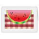 Une tranche délicieuse de pastèque juteuse sur un arrière - plan vérifié de tissu de pique-nique.