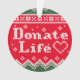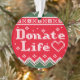 Voici un petit moyen d'encourager les gens pendant les périodes les plus sacrées de l'année à faire un don de vie. Voici un pull tricoté de Noël "cousu" directement sur un ornement, un design pour célébrer Noël et le cadeau de vie. Un ornement de Noël transplanté parfait pour les vacances ! C'est une belle façon pour les receveurs de greffes de promouvoir le don d'organes. Cette conception d'un pull de Noël tricoté, un ornement festif de donneurs d'orgue de vacances, sera magnifique sur votre arbre. Un grand cadeau pour les receveurs de foie, de coeur, de poumon et de rein. Joyeux Noël et merci ! - Kristin n'Steve, KNS Gear et le magasin de Noël KNS