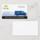Une camionnette bleue est l'image principale de ce dégradé. Le logo et les détails de votre nom apparaissent sur la partie supérieure, et votre nom d'entreprise apparaît au-dessus d'une bande noire en dégradé en bas. Cette conception est appropriée comme carte de nom pour ceux de l'industrie du transport ou de la logistique.