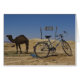 Camel et vélo devant les khettaras, ou puits reliés par un tunnel, près d'Erfoud, Maroc