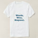 Le design des t-shirts comporte le slogan audacieux "Work, Win, Repeat" en typographie dynamique et moderne. Les mots "Work" et "Win" sont mis en surbrillance avec des couleurs fortes et contrastées, tandis que "Repeat" complète le message dans une police légèrement plus petite, mais toujours impactée. Le design véhicule motivation et détermination, avec des lignes pointues et des visuels élégants et énergiques pour mettre l'accent sur le cycle continu de l'effort et du succès. Parfait pour un esprit de go-getter, le style minimaliste mais puissant le rend idéal pour des vêtements actifs ou décontractés.