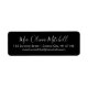 Voici la couleur tendance : Noir classique. Présentez-vous avec sophistication en utilisant cette étiquette d'adresse de retour moderne et élégant avec une police de caractères intemporelle et élégante en noir et blanc classique. Que ce soit pour un usage professionnel ou privé, ce modèle polyvalent peut être customisé selon vos besoins.