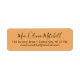 Voici la couleur de printemps tendance : Soft Orange. Présentez-vous avec sophistication en utilisant cette étiquette d'adresse de retour moderne et élégant avec une police de script intemporelle et élégante et couleur tendance. Que ce soit pour un usage professionnel ou privé, ce modèle polyvalent peut être customisé selon vos besoins.