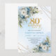 Trendy 80th Birthday Invitation Blue White Florals