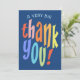 Une carte de remerciement très grande et colorée. Cette carte de remerciement plate à typographie moderne est le moyen idéal pour dire merci avec style. Personnalisez avec un nom et un message personnalisés. Convient parfaitement comme remerciement pour une fête d'enfants ou autre événement.