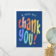 Une carte de remerciement très grande et colorée. Cette carte de remerciement plate à typographie moderne est le moyen idéal pour dire merci avec style. Personnalisez avec un nom et un message personnalisés. Convient parfaitement comme remerciement pour une fête d'enfants ou autre événement.
