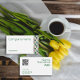 Carte de visite moderne minimaliste géométrique abstrait avec un jeu de couleurs vert et turquoise, avec un code QR. Idéal pour les propriétaires de petites entreprises, y compris les coiffeurs, les maquilleurs, les consultants et les professionnels de la cosmétologie. Ce design contemporain offre une façon visuellement attrayante et fonctionnelle de partager vos coordonnées et votre présence en ligne avec vos clients et clients.