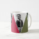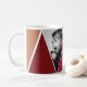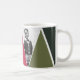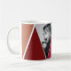 Mug avec des triangles en rouge et vert et place pour deux photos de le personnaliser et en faire un cadeau spécial.