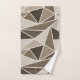 Cette serviette de bain est composée d'un triangle géométrique motif dans les tons monochromatiques marron, tan et beige.