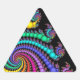Des brins translucides de perles ou de boules brillantes en spirale violette, rose, rouge, orange, jaune, vert et bleu dans le centre de l'audacieuse fractale sur cet autocollant de triangle arc-en-ciel. Idéal pour des événements gay pride, des collectes de fonds ou comme cadeau pour des amis et/ou des alliés LGBTQ.