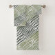An intricate abstract pattern made up of broken diagonal lines in different shades of green with a tribal vibe.
