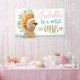 Filles sauvage une bannière de premier anniversaire avec une petite fille ethnique mignonne tenant un attrapeur de rêve et portant une tenue amérindienne sur un arrière - plan de design indien pastel du sud-ouest des Aztèques. Vous pouvez ajouter le texte de votre choix personnalisez cette adorable bannière de fête d'anniversaire de la tribu boho pour votre événement.