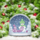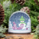 Illustration vectorielle de deux adorables bonhomme de neige en caricature vêtu de casquettes et de foulards tricotés. Le grand bonhomme de neige rusé est tricot une écharpe surdimensionnée pour le petit. Le foulard est déjà enveloppé plusieurs fois autour du mignon petit bonhomme de neige. Photo personnalisée au dos.