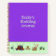 Journal de tricot violet avec titre personnalisé à l'avant. Avec le choix optionnel de papier graphique, un tricot peut créer ses propres motifs colorés sur chaque page. Un bon moyen de pratiquer sur mesure Fair Isle ou tricot échoué. Les graphiques ne sont pas spécifiquement de taille tricot, mais un débutant peut profiter de la pratique. Ou choisissez autre chose avec des lignes, ou des pages de sketchbook. Des aiguilles de tricot et du fil avec des paniers font une bordure le long du fond. Les carnets sont de trois tailles.