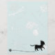 Papier à scandale et papier artisanal avec un thème tricot. Couleur bleu-vert pâle avec tout sur le motif clair des aiguilles et du fil de tricot. Un chat noir tire un fil de fil d'une boule au fond des deux côtés. Le texte noir en haut peut contenir un titre ou un autre texte, qui s'aligne sur le haut de la page. Le libellé peut également être supprimé. Utilisé dans le scrapbooking ou pour d'autres arts de la fibre.