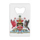 Les armoiries de Trinité-et-Tobago ont été conçues par un comité formé en 1962 pour sélectionner les symboles qui seraient représentatifs du peuple de Trinité-et-Tobago. La crête de palmier au sommet de l'armoirie a été tirée des armoiries de Tobago avant d'être rejointe dans l'union politique avec Trinité. Le bouclier est composé des mêmes couleurs (noir, rouge et blanc) que le drapeau de la nation et a le même sens. Les navires en or représentent les trois navires de Christophe Colomb utilisés pour son voyage. Les deux oiseaux sur le bouclier sont des colibris. Trinidad est parfois appelée le "Pays du Colibri" parce que 18 espèces différentes d'oiseaux chanteurs ont été enregistrées sur l'île. "Terre du Colibri" aurait aussi été le nom amérindien de Trinidad. Les deux plus gros oiseaux sont l'Ibis écarlate (à gauche) et le Cocrico (à droite), les oiseaux nationaux de Trinidad et Tobago. Au-dessous de l'Ibis écarlate se trouvent trois collines, représentant les collines de la Trinité dans le sud de Trinidad, qui, on croit, a convaincu Columbus de nommer l'île d'après la Sainte Trinité. L'île qui s'élève des eaux sous le Cocrico représente Tobago. Au-dessous de ces oiseaux se trouve la devise de la nation, "Ensemble nous aspirons, Ensemble nous atteignons."
