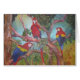 Cette conception tropicale d'un trio des aras lumineux dans le sauvage est d'une peinture à l'huile par l'artiste du sud Betty Laur de la Floride. www.bettylaur.com