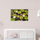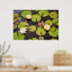 Elevate your interior design with the balanced, natural geometry of the Triple Lotus & Lily Pad Pattern Poster. Captured from a unique bird’s-eye view, this photograph showcases a trio of pristine white-water lilies nestled among a mosaic of floating green and bronze lily pads.