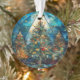 Il y a trois arbres de Noël en vitrail avec les plus hauts du centre et deux plus courts de chaque côté. Il y a des étoiles jaunes et le ciel bleu comme l'arrière - plan.
