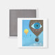 Ces magnets carrés d'affirmation présentent ma peinture de trois montgolfières dans le ciel. Le plus grand est brun bronze ; il a un troisième oeil qui est vert bleu, avec les mots, Imagine Love, autour de l'oeil. Le mot amour est entouré de coeurs roses. Le ballon de taille moyenne est un mélange jaune orange pour représenter le soleil, le dessus étant plus jaune et le dessous plus orange. Le plus petit ballon, plus distant, est une scène de sable, de vagues de l'océan et de ciel. Il y a de faibles nuages près du fond de la scène du ciel. La couleur arrière - plan autour de la scène peut être customisée à n'importe quelle couleur de votre sélection. Merci pour faire du shopping CherylsArt sur Zazzle.
