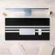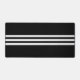 Tapis de bureau élégant avec trois bandes blanches sur fond noir. Design minimaliste élégant.