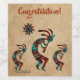 Personnalisez ce Étiquette à vin "One of a Kind" sud-ouest de Kokopelli! Trois Kokopelli Sud-Ouest dansent et jouent la Flûte sous le soleil sur un Arrière - plan en cuir bronzé et les mots..."Félicitations ! C'est un Art Design original de l'artiste Kerry Miller.