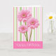 Une carte d'anniversaire aux couleurs vives et aux rayures. Le texte à l'intérieur de la carte, qui dit "J'espère que vous passerez une bonne journée" est personnalisable selon votre préférence personnelle.