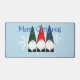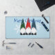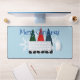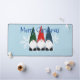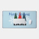 Ce tapis de bureau de Noël présente des oeuvres d'art originales de Dogwood & Thistle de trois gnomes portant de hauts casquettes colorés. Changez le salut saisonnier personnalisé, dans une police bleue amusante sur un arrière - plan bleu pâle avec des flocons de neige blancs, directement sur la page du produit pour en faire le vôtre!