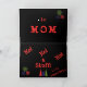 Avant : Trois Joyeux Arbres de Noël colorés sur le noir rendent ce design minimaliste moderne pop. Mots personnalisables : "Joyeux" "Noël" Dans le haut : bordure du coin de neige. Mots personnalisables : "à" "MOM" Dans le bas : bordure du coin de Flocon de neige. Mots personnalisables : "Ho !" "Ho !" "Ho !" "&" "Stuff" "Love" "Eddie & Chelle" Rouge Vert Bleu Noir