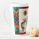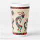 C'est un "One of a Kind" unique Mug en latte Kokopelli Sud-Ouest! Il comprend trois Kokopelli Jouant de la Flûte et dansant sous le soleil sur un Arrière - plan de grès...Entouré d'une frontière sud-ouest en Turquoise, Orange & Noir! Design D'Art Original Par L'Artiste Kerry Miller.