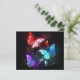 Trois papillons lumineux, rouges, violets, verts, texturés, nocturnes sur arrière - plan noir lumineux.