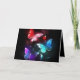 Trois papillons lumineux, rouges, violets, verts, texturés, nocturnes sur arrière - plan noir lumineux.