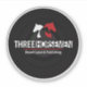 Un autocollant transparent avec le logo de Trois cavaliers enregistre le étiquette et l'édition.
