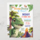 Une invitation à l'anniversaire de dinosaure est un invitation de fête à thème avec des graphismes amusants de dinosaures, des couleurs audacieuses et des textes ludiques comme "Stomp, Chomp, et Roar!" Les dessins populaires sont composés de dinosaures de dessins animés, d'arrière - plans d'inspiration fossile ou de paysages de jungle. Parfaits pour les enfants qui aiment les dinosaures, ils donnent le ton d'une fête préhistorique sur le thème de l'aventure !
