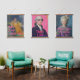 Trois créations d'art uniques et tendance sur les murs suspendus.