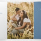 Bleu gris blanc botanique stylisé fleur de lis et fleurs printanières et vignes ligne art dessin programme de mariage avec deux photos pleine page. Personnalisez avec vos propres initiales monogrammes, date de l'événement, détails de la cérémonie du mariage, noms de la fête de mariage, mots de remerciement et deux photos spéciales. Autres couleurs et articles mariages correspondants disponibles. © Dessin à la main original et design par Sarah Trett pour www.mylittleedenweddings.com sur Zazzle.