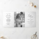 Cet élégant programme de mariage photo en noir et blanc est triplé et dispose de 6 pages pour s'adapter à toutes vos informations de cérémonie de mariage. Le panneau central arrière a votre photo pour une touche personnalisée.