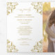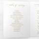 Cet élégant programme de mariage d'or est triple et dispose de 6 pages pour s'adapter à toutes vos informations de cérémonie de mariage. Le panneau central arrière a votre photo pour une touche personnalisée.