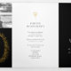 Programme de mariage monogrammé à feuille ovale en noir et or dessiné à la main avec vos propres sections histoire d'amour et souvenir. Personnalisez ce programme triplé mariage avec vos propres détails de cérémonie de mariage, noms de fête, photo et histoire d'amour, et dédicaces. Design simple en forme ovale feuille avec votre propre monogramme en or sur noir et blanc. Autres couleurs et articles mariages correspondants disponibles. © Dessin et dessin à la main de la feuille d'origine par Sarah Trett pour www.mylittleedenweddings.com sur Zazzle.