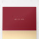 Cette élégante faire-part de mariage 3 en 1 est dotée d'un audacieux arrière - plan rouge bordeaux, d'une décoration florale dorée romantique et d'un panneau photo à pleine largeur, idéal pour les couples modernes qui organisent une fête élégante. Avec les sections RSVP intégrées et détails, ce format triplé offre une solution pratique et éco-consciente qui se sent à la fois luxueuse et personnelle. Une enveloppe séparée est nécessaire pour l'envoi.