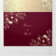 Cette élégante invitation de mariage triple volets associe un dégradé romantique de bordeaux et d'or avec des accents floraux et un espace pour une photo personnelle. Avec une section de réponse et de détails intégrée, elle offre une solution élégante et écologique pour les couples modernes. Parfaite pour les mariages d'hiver ou de fêtes avec une esthétique chaleureuse et luxueuse. Veuillez noter : Cette invitation nécessite une enveloppe séparée pour l'envoi postal. Nous recommandons l'utilisation d'une enveloppe A9 standard (5,75 "x 8,75").