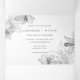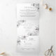 Invités Invitations à votre mariage avec ce triplé personnalisable tout en un faire-part de mariage, avec illustrations en noir et blanc de lys floraux avec police moderne. Ce faire-part de mariage est parfait pour toute saison.